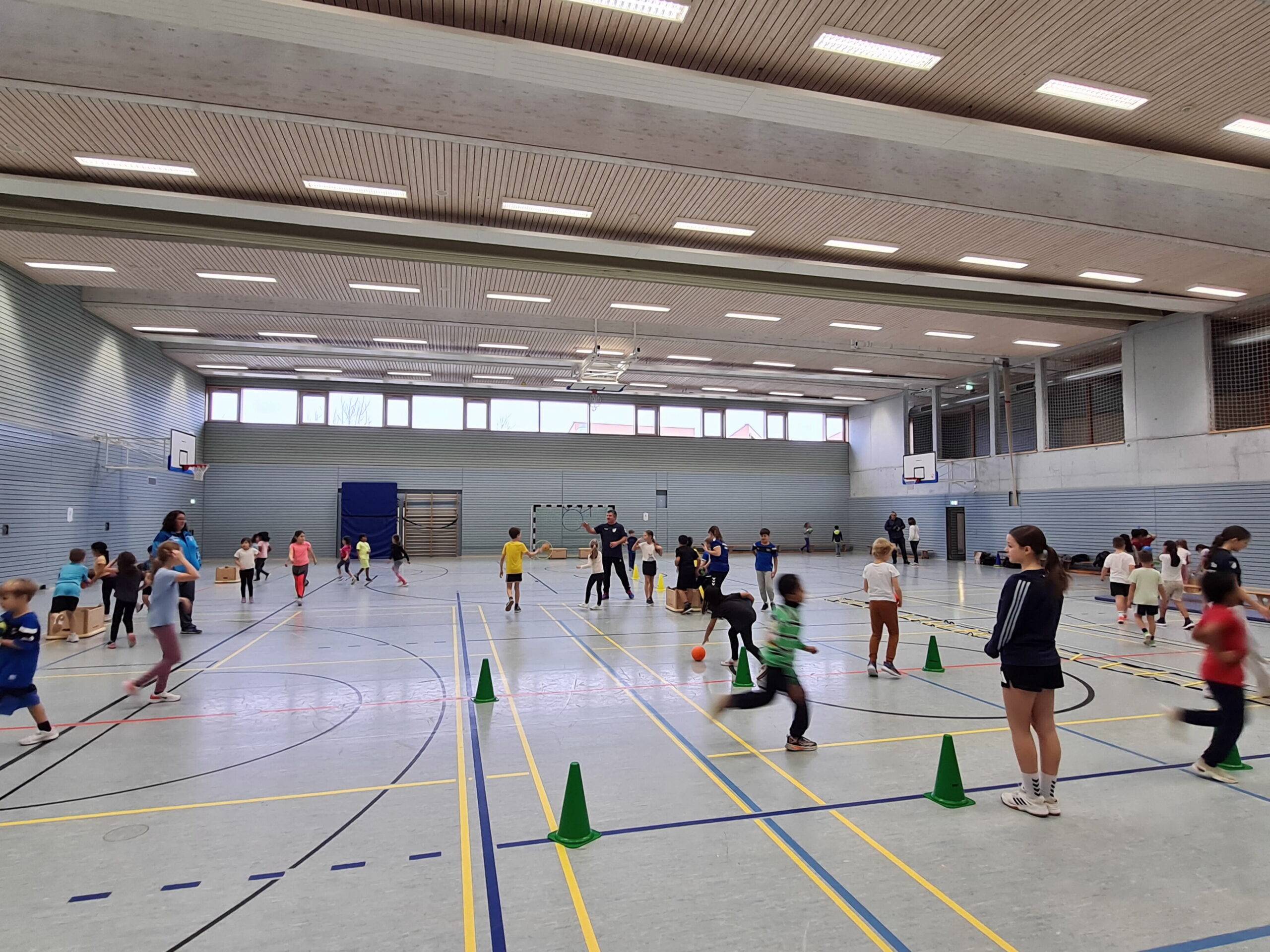 Genau wie in den Vorjahren durfte unsere Schule auch in diesem Jahr mit allen zweiten Klassen teilnehmen. Die Handballerinnen und Handballer der SG Astoria Walldorf hatten sich extra für diesen Vormittag freigenommen, um unseren Kindern einen kleinen Einblick in die Welt des Handballs zu geben. Für die Durchführung hatten sie sieben Stationen rund um die Themen Werfen und Zielwerfen, Prellen, Kräftigung, Koordination und Balancieren aufgebaut. Jede Station wurde fachmännisch von einem Teammitglied betreut.
